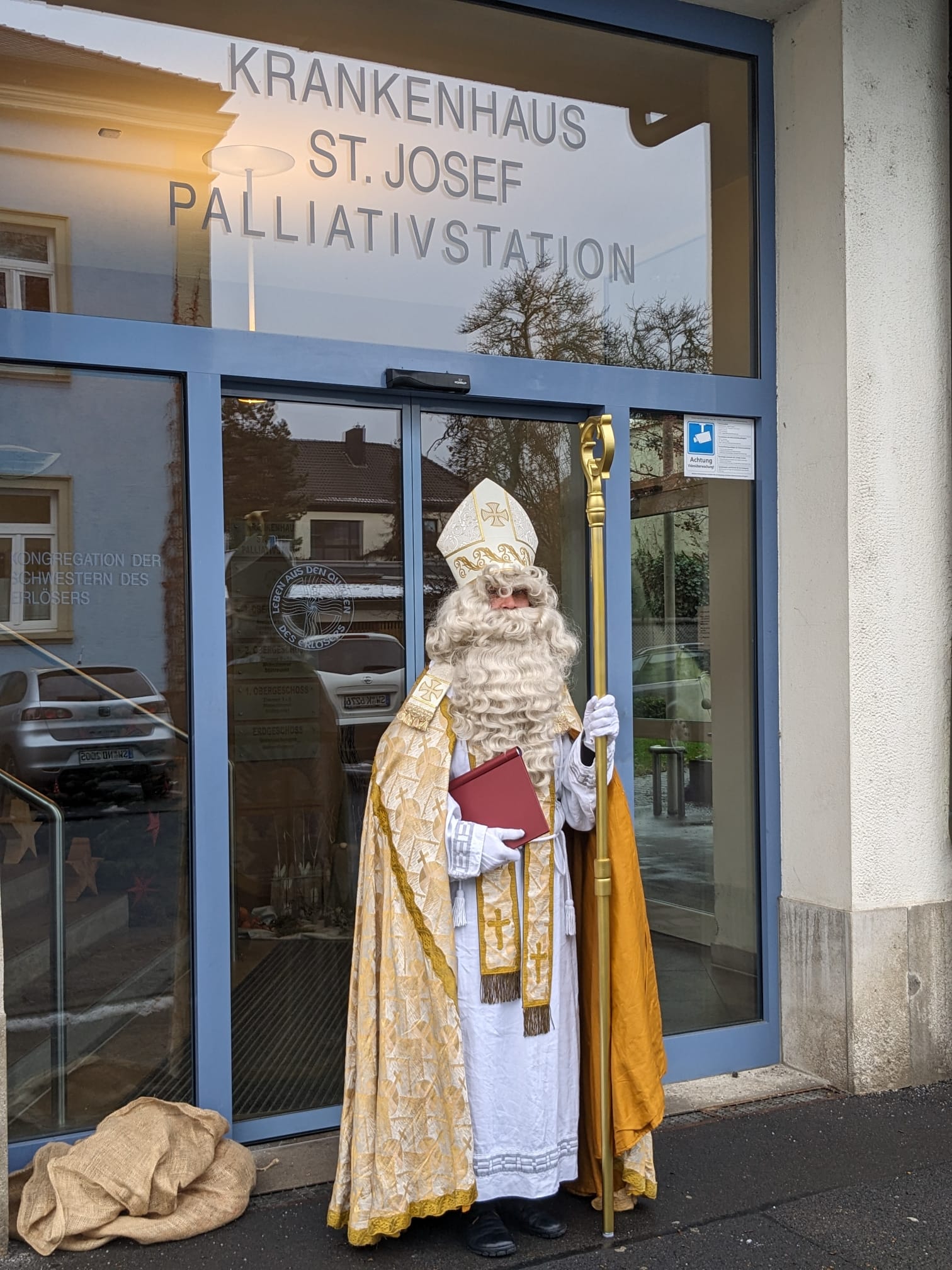 Doch auch das sollte noch nicht unsere letzte Station gewesen sein und es ging für uns noch weiter ins Pflegezentrum am Wasserturm, wo wir die Bewohner*innen und das Personal auf sechs Stationen besuchen durften. Auch hier erlebten wir viele berührende Begegnungen mit den Menschen, die sich für einen Moment in ihre Kindheit zurück versetzt fühlten. Für einen Besuch in der Bahnhofsmission waren wir dann leider zu spät dran, doch konnten wir in den darauffolgenden Tagen auch dort noch Schokonikoläuse vorbeibringen.